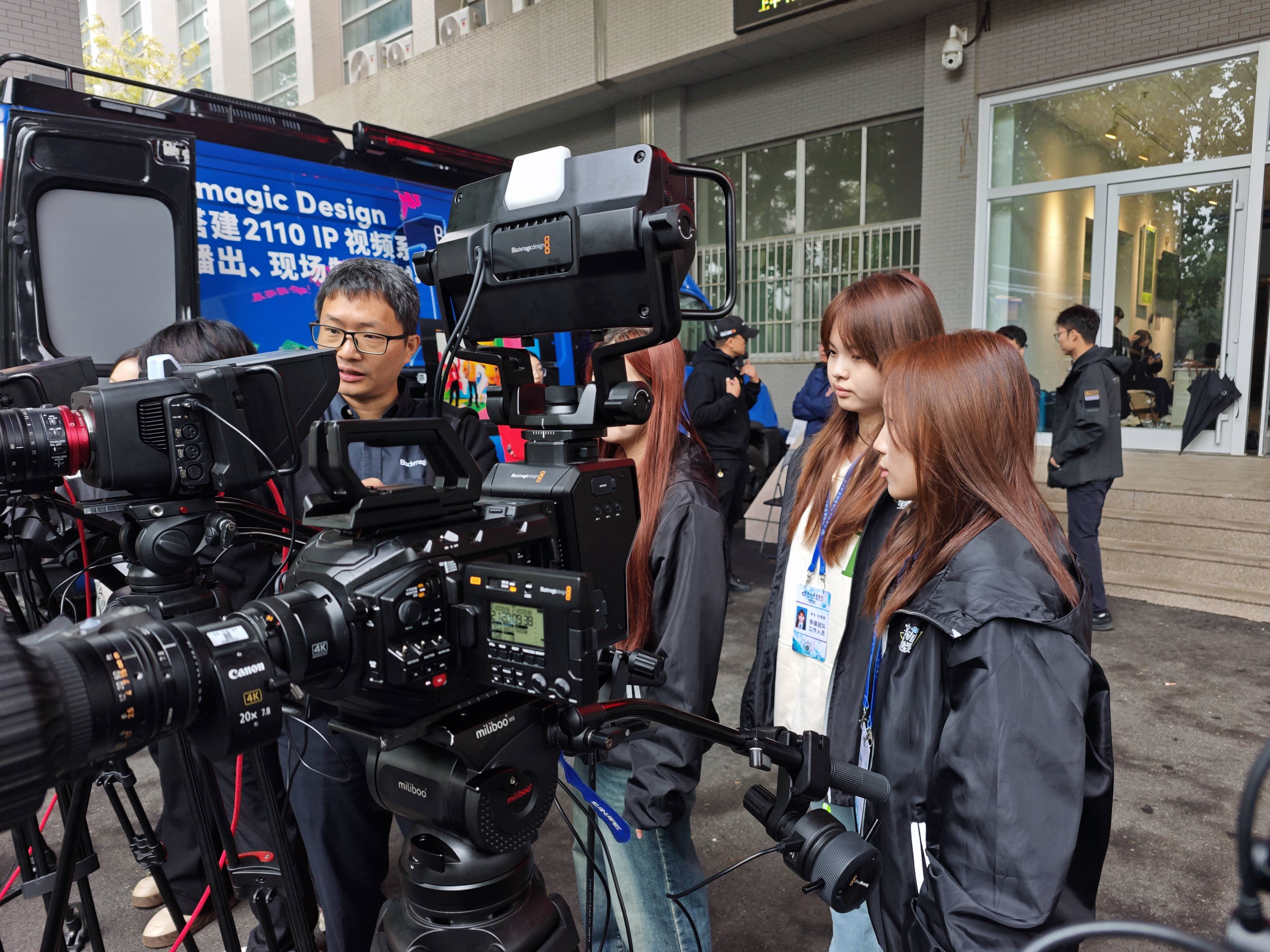 10月17日,Blackmagic Design SMPTE-2110 IP 转播车全国巡展活动如期走进我院。此次巡展聚焦行业前沿超高清转播技术,为学院师生搭建了 “零距离” 接触行业设备、对话技术专家的实践平台。学院院长张涛、影视制作系主任贾庆萍、实训中心主任刘玉飞、相关专业教师、实训教师及学生参加巡展观摩活动。
